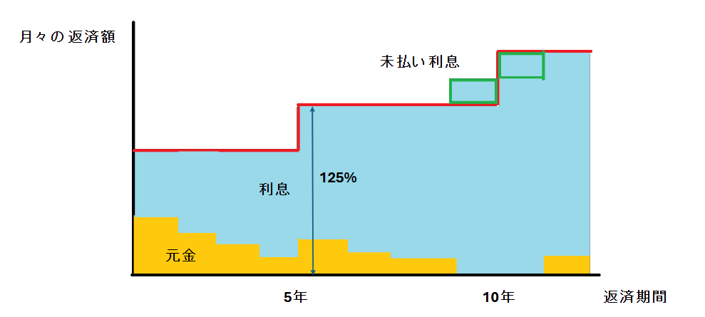 5年ルール・・・金利の変動に対し、5年間は支払い金額が変更されない。